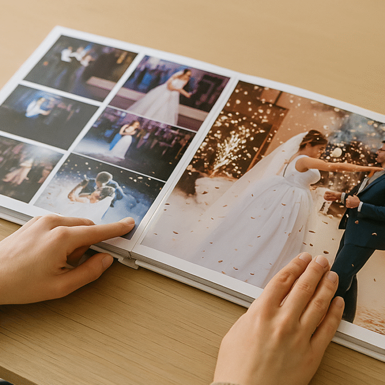 אתם שולחים את כל החומרים – תמונות מהאירוע, רגעים מיוחדים ופרטים שלא תרצו לשכוח. ביחד אנחנו ממיינים ומסדרים אותן כך שהאלבום יספר את הסיפור בצורה זורמת ומרגשת.